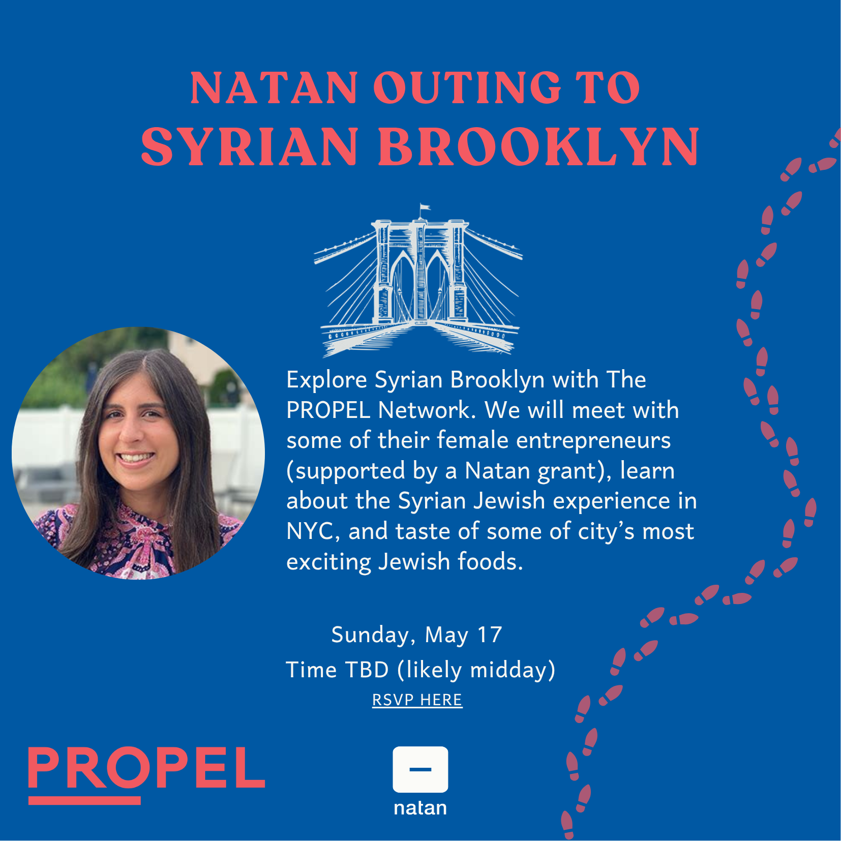 Back to All Events Natan Outing in Syrian Brooklyn Sunday, May 17, 2026 11:00 AM 3:00 PM Avenue U (map) Google Calendar ICS